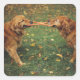Golden Retrievers playing tug-of-war with toy in Square Sticker