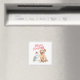 Our Golden retriever MAGNET feature watercolor illustration of a funny dog with Santa Hat and a snowman and pine tree.