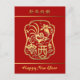 Golden paper-cut (printed image) of Rooster with its Ideogram. Design on vertical greeting postcard with Greeting in Chinese and English + golden lines on red background. Your can easily change background color by clicking the customize button. Matching greeting card, sticker, craft products and more... Perfect for Chinese New Year of The Rooster.
