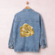 A golden rose on the back of a denim jacket. Including the Vishnuh Society logo