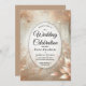 Set the tone for your fairytale celebration with this romantic wedding invitation, featuring a softly glowing woodland scene adorned with rose gold leaves, delicate florals, and magical light sparkles. The ethereal background blends muted blush, bronze, and cream hues to create an elegant, enchanted forest ambiance. Perfect for autumn, winter, or nature-inspired weddings, this design brings warmth and whimsy to your special day. Easily personalise the text with your wedding details to create an invitation as timeless as your love story.