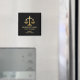 A personalised magnet with an image of golden scales on a black background. Simple and elegant. Personalise with your business info.