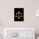 Poster with an image of golden scales on a black background. Simple and elegant.
