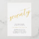 Celebrate her milestone birthday with these chic 70th birthday party invitations featuring "seventy" in modern gold foil hand sketched script lettering. Personalise with your party details beneath. A unforgettable, luxe choice for fabulous 70th birthday celebrations.