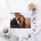 This elegant, shimmering wedding thank you postcard features an overlay of modern, gold foil script typography as an overlay for your favourite wedding photo. There is more room for a short message on the back, and a tiny heart also adds some love and style to the back.