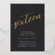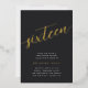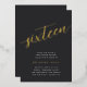 Celebrate her milestone birthday with these chic 16th birthday party invitations featuring "sixteen" in modern gold foil hand sketched script lettering. Personalise with your party details beneath. A unforgettable, luxe choice for fabulous 16th birthday celebrations.