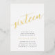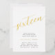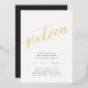 Celebrate her milestone birthday with these chic 16th birthday party invitations featuring "sixteen" in modern gold foil hand sketched script lettering. Personalise with your party details beneath. A unforgettable, luxe choice for fabulous 16th birthday celebrations.