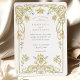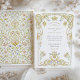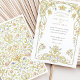 The back of the card is richly decorated with a symmetrical garden-inspired pattern, filled with swirling vines, tulips, and layered floral elements. Its vintage palette and refined detail evoke the feel of antique wallpaper or historic botanical manuscripts. Ideal for spring weddings, garden celebrations, or couples seeking romantic and timeless elegance.