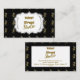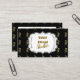 A bold and luxurious black-and-gold stylist business design featuring a seamless pattern of golden scissors, brushes, and salon tools. The ornate central frame adds an elegant touch, making this layout perfect for professionals who want a polished, high-impact look.
