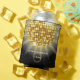 Golden disco ball with string lights dance party birthday can cooler. Perfect party supplies for men's and women's birthday celebrations.