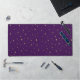 Golden shiny stars on purple background desk mat