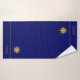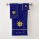 Elegant golden ship steering wheel on navy blue Bath Towel Set. Text can be personalised.