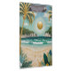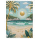 Dive into a fantastical tropical paradise where the sun's golden light transforms the world. This whimsical artwork captures a serene beach scene, where the sand shimmers with a soft, warm glow. Towering palm trees and majestic cliffs are not just silhouettes against the sky, but are rendered in pure gold, reflecting the radiant brilliance of the sun. The water gently laps at the shore, inviting you to step into a world of pure imagination and escape.