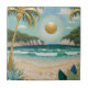 Dive into a fantastical tropical paradise where the sun's golden light transforms the world. This whimsical artwork captures a serene beach scene, where the sand shimmers with a soft, warm glow. Towering palm trees and majestic cliffs are not just silhouettes against the sky, but are rendered in pure gold, reflecting the radiant brilliance of the sun. The water gently laps at the shore, inviting you to step into a world of pure imagination and escape.