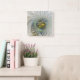 Golden Silver Flower Fantasy abstract Fractal Art Square Wall Clock