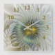 Golden Silver Flower Fantasy abstract Fractal Art Square Wall Clock
