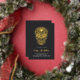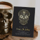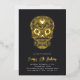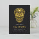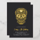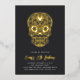 A spooky chic Dia de los Muertos birthday party invitation featuring an intricate calavera sugar skull illustration in shining gold foil. Personalise with your birthday party details beneath.