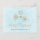 Merry Christmas postcard with an illustration of fancy golden snowflakes with elegant crystalline shapes. A frosty light blue background. Personalise with your name on the front and message on the back.