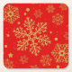 Golden snowflakes on red square paper coaster