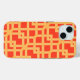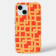 Repeating square golden linear and layered into connecting sides and corners over red orange background colour