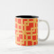 Repeating square golden linear and layered into connecting sides and corners over red orange background colour