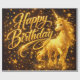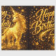 "Bring birthday wishes to life with enchantment! ‘Happy Birthday’ sparkles in golden letters alongside a majestic golden unicorn and twinkling stars—perfect for dreamers and fantasy lovers of all ages."