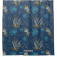 Golden Starfish & Coral Reef Pattern on Blue Shower Curtain