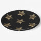 Golden Stars Black and Gold Festive Elegant Paper Plate