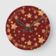 Golden Stars Dark Red Shiny Elegant Stylish Chic Round Clock