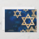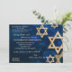This royal blue bokeh background consists of golden stars of David on the right in elegant design. You will be proud to invite your gests to your special occasion. All text can be beautifully customised to make your perfect day complete.