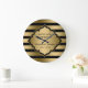 Golden Stripes Pattern And Frame Large Clock