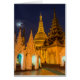Myanmar, Yangon. Golden stupa and temples of Shwedagon Pagoda at night with moon. | Brenda Tharp / DanitaDelimont.com