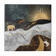 A stunning cosmic-inspired abstract ceramic tile that blends nature, luxury, and mystery. The composition features a radiant golden sun rising over textured black marble mountains, contrasted by a golden crescent moon nestled in rich brown marble. A lone golden elephant walks across the surreal terrain, adding an element of wonder and symbolism. The night sky, filled with shimmering stars, completes the celestial atmosphere. With its mix of marble textures, glowing metallic tones, and dreamlike scenery, this design captures a balance between strength, serenity, and the infinite beauty of the universe.