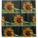 This shower curtain features a glowing sunflower with bees gathering nectar.