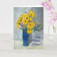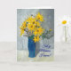 A pretty Mother's Day with the greeting in Welsh and a blue vase of Golden Sunflowers, from an oil pastel painting by Judy Adamson.