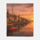 Golden Sunset Over Coastal Village Fleece Blanket