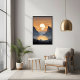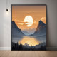 Immerse yourself in the captivating beauty of this AI-generated landscape artwork glossy poster print that portrays a stunning sunset scene over a vast mountain range. The radiant golden sun sets between towering, jagged peaks, casting a warm, golden glow over the entire valley. The serene reflection of the sun on the calm waters below adds a sense of tranquillity and grandeur to the artwork. With its soft clouds, peaceful trees, and vivid yet soothing colours, this piece evokes a deep sense of calm and awe for nature’s raw beauty. This nature-inspired artwork Is the perfect addition to any home, office, or living space, bringing the outdoors inside with an unforgettable view of majestic mountains at dusk. Ideal for nature lovers, outdoor enthusiasts, or anyone seeking a peaceful yet dramatic scene to enhance their interior decor. Whether you're looking to complete your living room, bedroom, or office space, this piece will transform any wall with its breathtaking colours and composition. Perfect for occasions like housewarmings, anniversaries, and even birthdays, this artwork is designed for those who appreciate the splendour of the great outdoor.