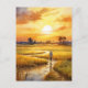 Title: Golden Sunset Over Rural Rice Fields with Farmer on Pathway