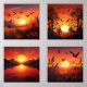 A stunning set of four serene sunset images featuring golden hues and silhouettes of birds in flight. These nature-inspired artworks evoke peace and beauty, perfect for home décor or personal accessories.