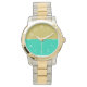 Watches are both functional and fashionable. Golden Sunset Waters features classic white numbers over a dual-colour face of aqua and gold. Classic elegance has never been more evident.