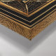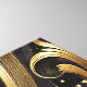 An intricate design composed of swirling golden patterns set against a dark background. The flowing curves create a sense of movement and elegance.