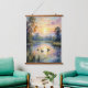 Golden Tranquillity Sunset Pond Landscape with Duc Hanging Tapestry