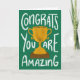 When you want to give someone a trophy for being so gosh darn amazing but you have to settle for a paper card, this is it. A hand-lettered message that says "congrats, you are amazing" around a golden trophy illustration on a green background with easy to customise text inside to really make this card personal.