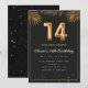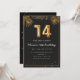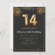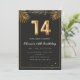 Adorable 14th birthday party invitation in a black and gold balloons design with golden tropical palm leaves. Customise with your party details and mail out to family and friends inviting them to celebrate the 14th birthday with style!