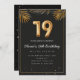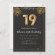 Adorable 19th birthday party invitation in a black and gold balloons design with golden tropical palm leaves. Customise with your party details and mail out to family and friends inviting them to celebrate the 19th birthday with style!