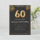 Adorable 60th birthday party invitation in a black and gold balloons design with golden tropical palm leaves. Customise with your party details and mail out to family and friends inviting them to celebrate the 60th birthday with style!