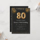 Adorable 80th birthday party invitation in a black and gold balloons design with golden tropical palm leaves. Customize with your party details and mail out to family and friends inviting them to celebrate the 80th birthday with style!