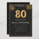 Adorable 80th birthday party invitation in a black and gold balloons design with golden tropical palm leaves. Customise with your party details and mail out to family and friends inviting them to celebrate the 80th birthday with style!