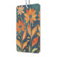 tylized folk-art-inspired digital painting with bold outlines and rich gradients. This piece merges vintage textile motifs with contemporary digital flair. Bright orange and golden flowers dance across a twilight-blue canvas in this folk-inspired floral illustration. Bold lines and warm hues create an enchanting, vintage-modern aesthetic