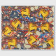 GOLDEN UNICORNS ,RED BLUE MARBLED EFFECTS ,CIRCLES WRAPPING PAPER